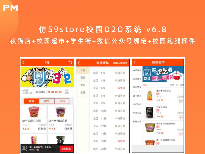 文章标题:仿59store校园O2O系统 v6.8 夜猫店+校园超市+学生街+微信公众号绑定+校园跑腿插件