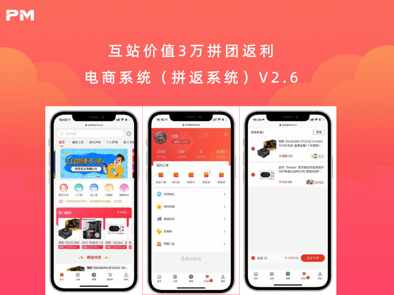拼返系统是由韬龙网络开发的一套完美可运营的拼团返利电商系统,渠道覆盖H5、公众号、小程序、APP。