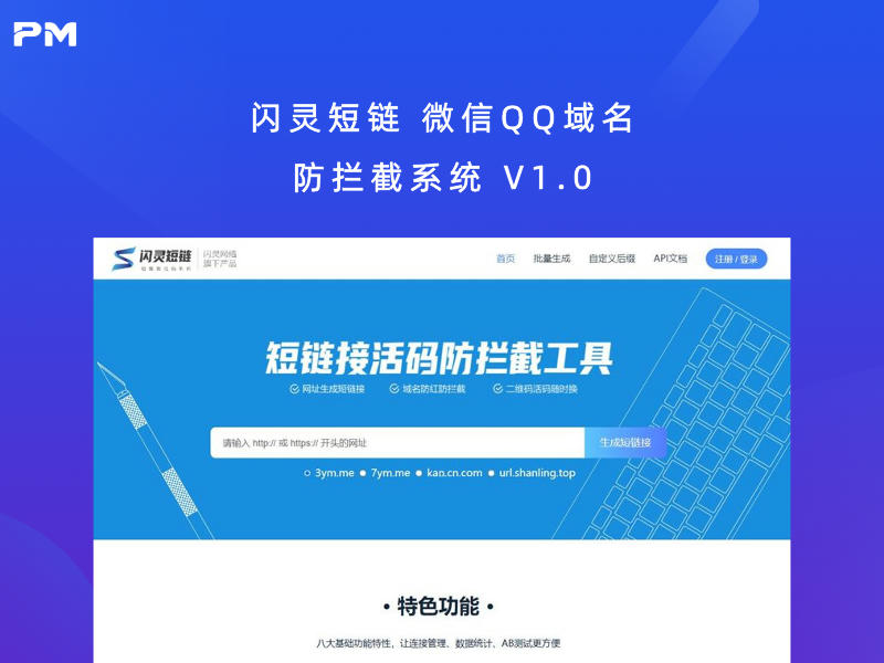 闪灵短链 微信QQ域名防拦截系统是一款以PHP+MySQL进行开发的短网址在线生成系统源码。