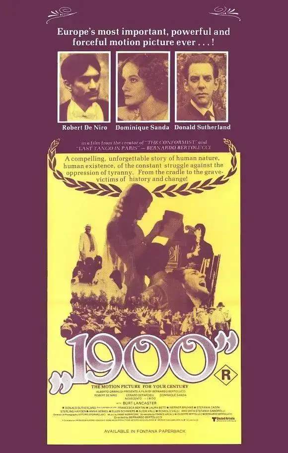 《一九零零》是一部意大利、法国和前西德联合拍摄的历史片,由意大利导演贝纳尔多·贝托鲁奇执导, 罗伯特·德尼罗、杰拉尔·德帕迪约和多米尼克·桑达领衔主演。该片讲述了出生在同一天的两个人,从小就结下了友谊,然而因为地位阶级与出身经历的不同,使两人的人生产生天壤之别的故事。该片于1976年上映。