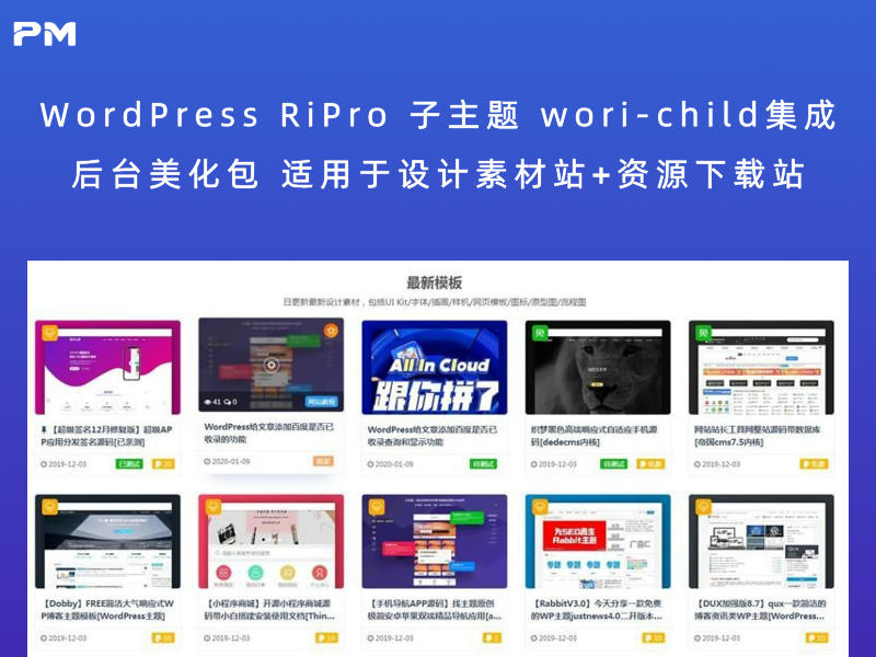 文章标题:WordPress RiPro 子主题 wori-child集成后台美化包 适用于设计素材站+资源下载站