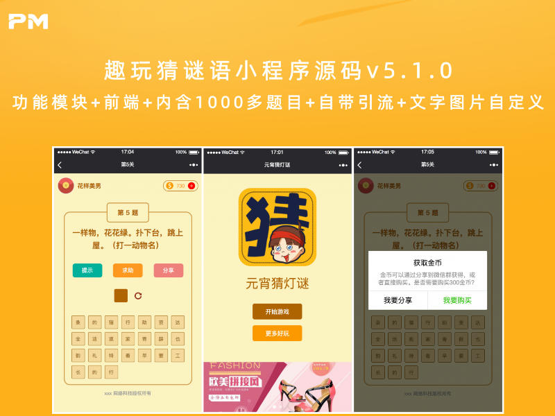 文章标题:趣玩猜谜语小程序源码v5.1.0 功能模块+前端+内含1000多题目+自带引流+文字图片自定义