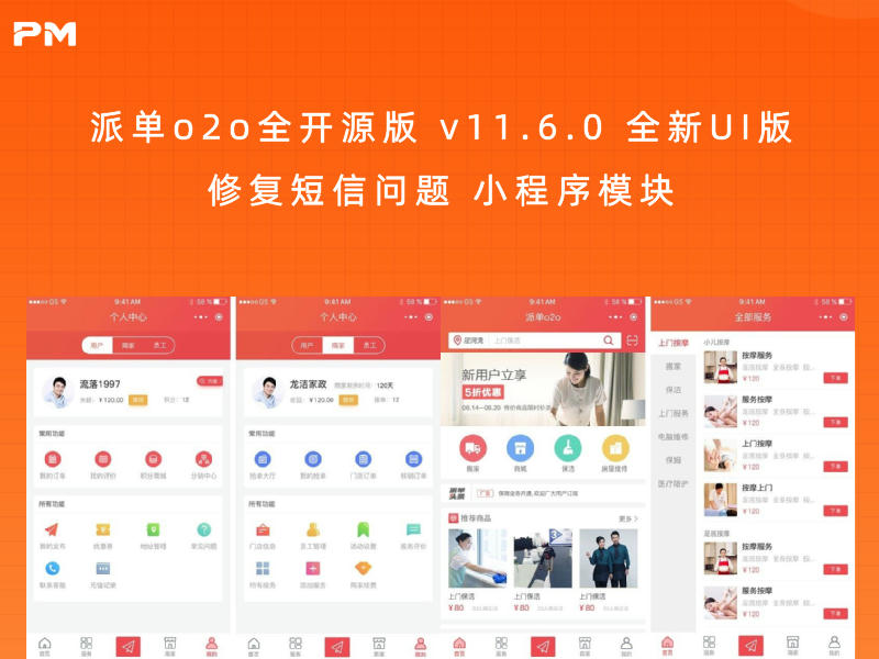 文章标题:派单o2o全开源版 v11.6.0 全新UI版 修复短信问题 小程序模块