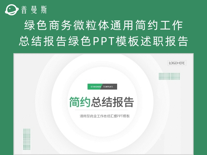 文章标题:绿色商务微粒体通用简约工作总结报告绿色PPT模板述职报告