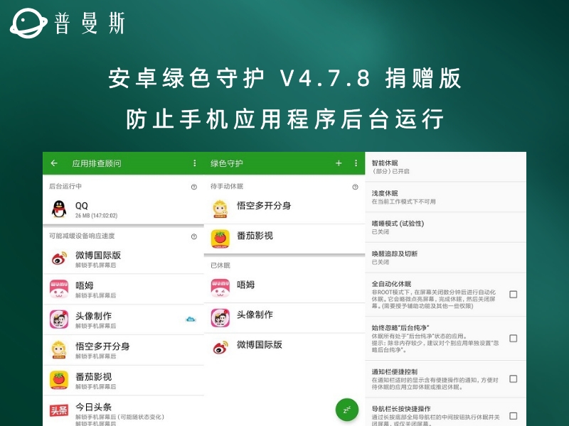 文章标题:安卓绿色守护 V4.7.8 捐赠版 防止手机应用程序后台运行