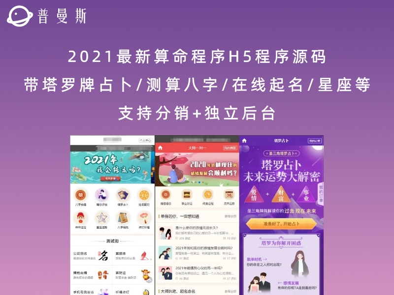 文章标题:2021最新算命程序H5程序源码 带塔罗牌占卜/测算八字/在线起名/星座等 支持分销+独立后台