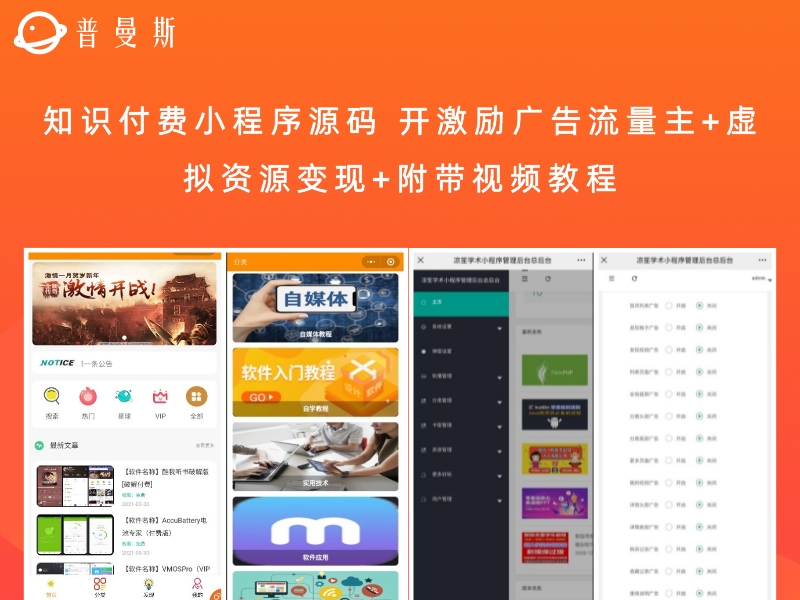 文章标题:知识付费小程序源码 开激励广告流量主+虚拟资源变现+附带视频教程