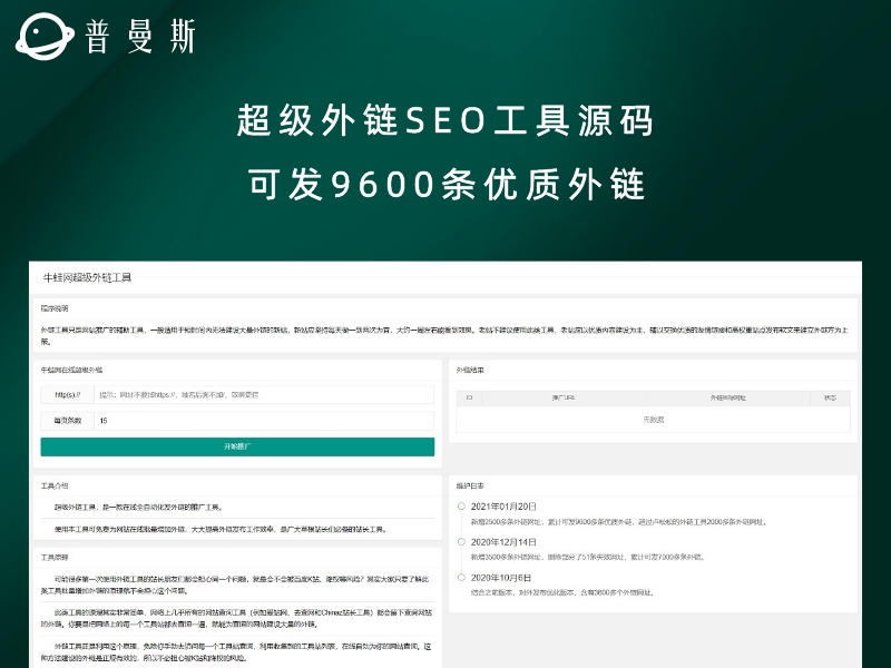 超级外链工具是一个在线为网站自动建设外链的站长工具,界面偏向清爽风格,大气简洁,还带有进度条,目前整合了9600多条外链网址,你可自行修改 urls.txt 文件对网址进行添加或删减。