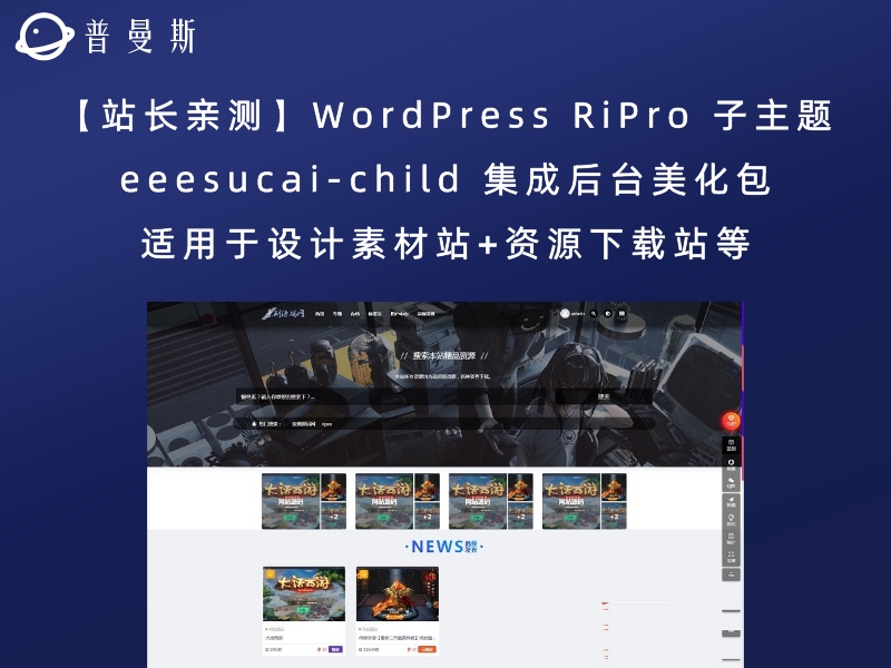 文章标题:【站长亲测】WordPress RiPro 子主题 eeesucai-child 集成后台美化包(适用于设计素材站+资源下载站等)