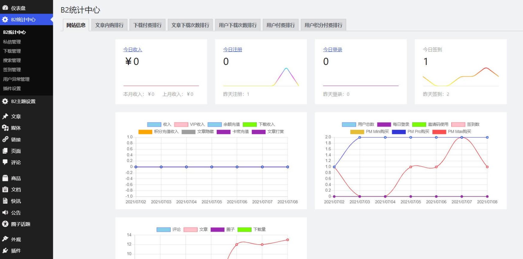 文章标题:B2主题统计插件 v4.4 实时掌握网站下载及付费数据
