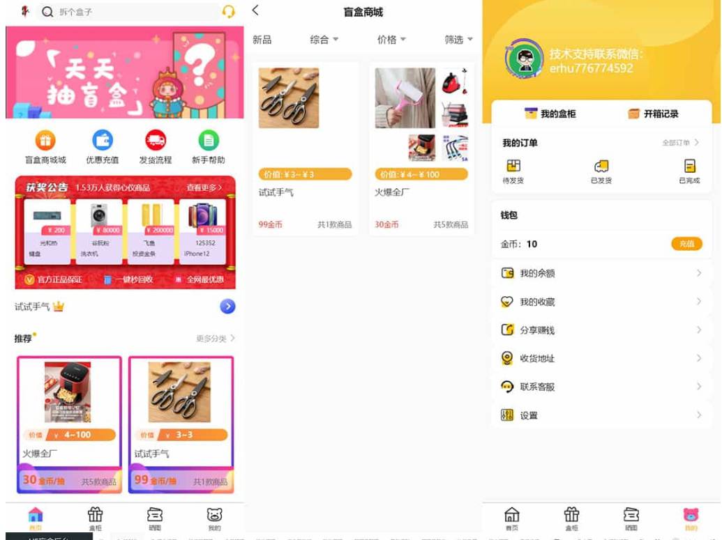 最新PHP盲盒商城系统源码,晒图+免签+短信验证+在线回收。ThinkPHP框架,源码前端uniapp开发,可以打包成APP(非H5封壳)+H5,接其他平台支付通道,前后端全开源。