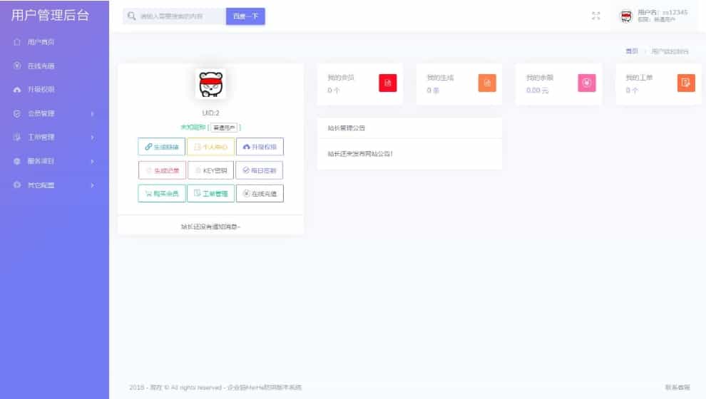 - 用户中心增加购买套餐及独立KEY