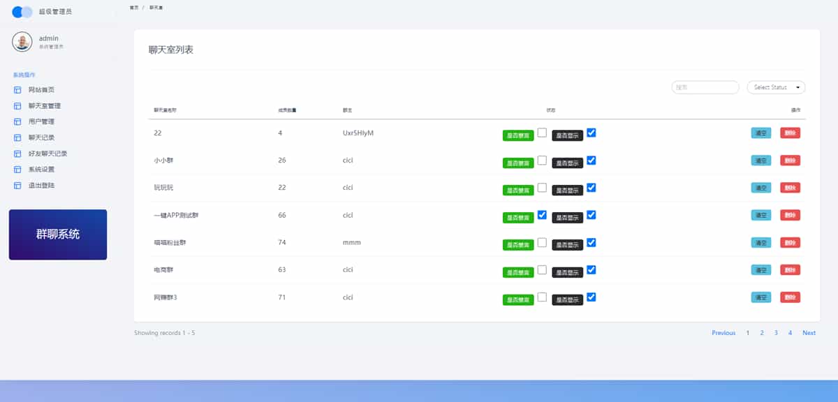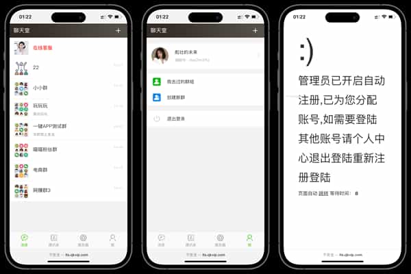 挺不错的一款在线实时群聊聊天室源码,访问首页带自动注册账号功能,支持用户创建群聊,设置群禁言。