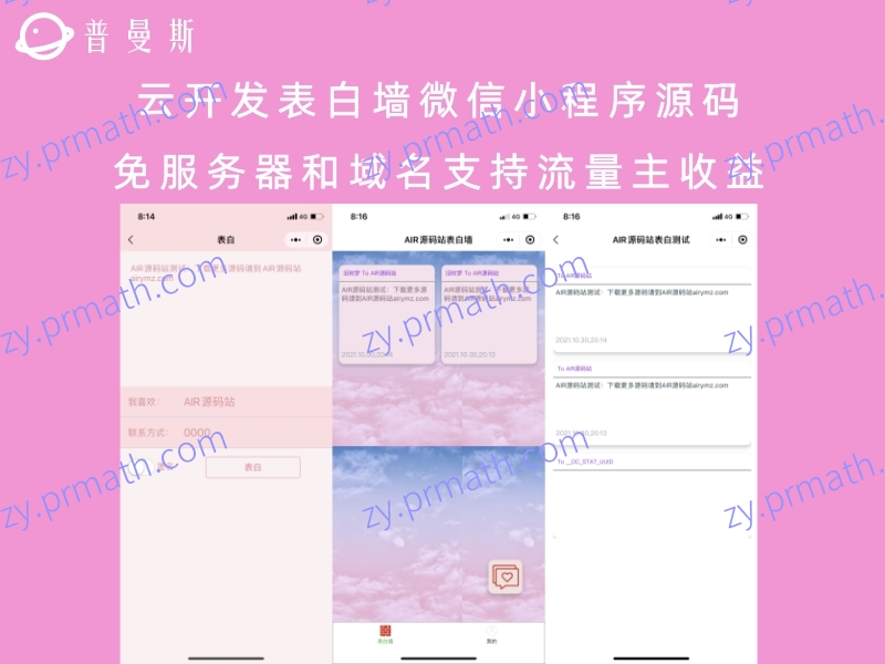 文章标题:云开发表白墙微信小程序源码 免服务器和域名支持流量主收益