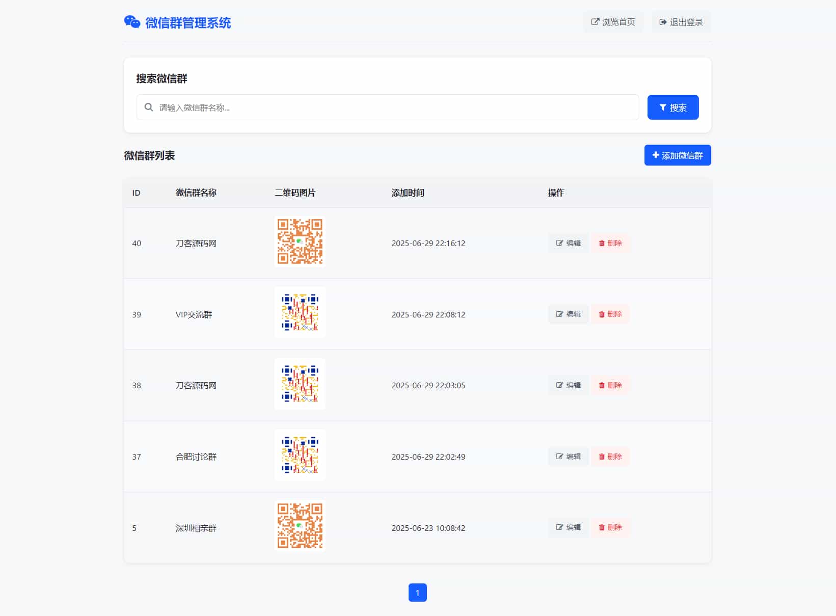 - 管理员后台可以操作编辑所有用户上传的微信群和二维码。