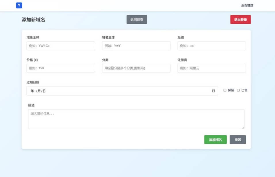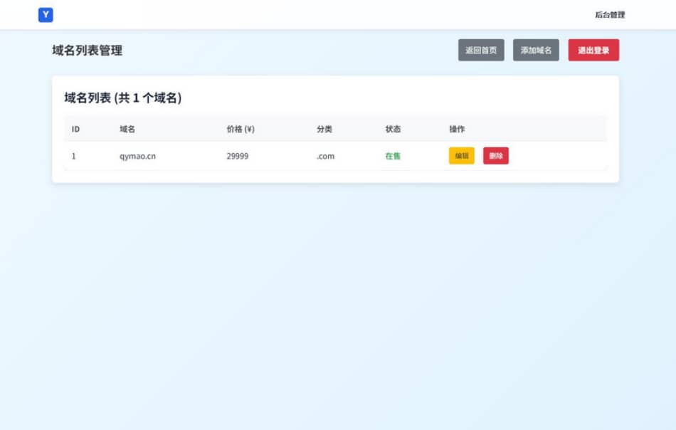 文章标题:【资源编号34411】域名出售系统 带简易后台管理的米表系统 自适应页面