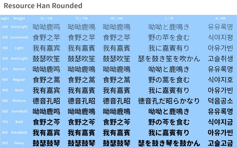 文章标题:《资源圆体》一款包含7种字重的圆体免费可商用中文字体