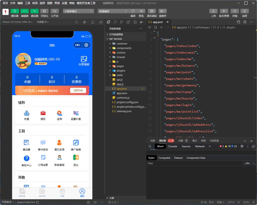 物流插件安装地址:https://mp.weixin.qq.com/wxopen/ … 2&token=&lang=zh_CN,或在微信开发者工具中打开的小程序代码中,找到app.json,然后在该文件中删除如下插件引用的代码:
