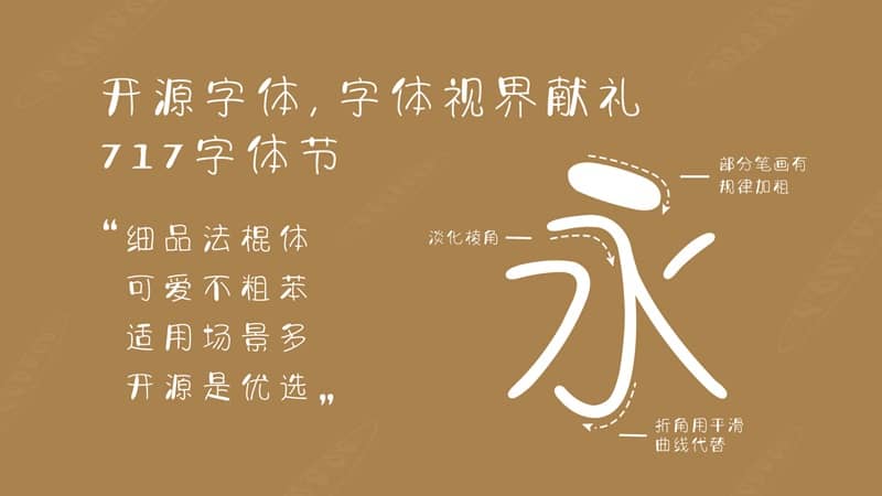 - 字体视界法棍体:是字体视界推出的一款开源字体。允许任何个人和企业免费使用,包括商业用途,但禁止用于任何违法用途。