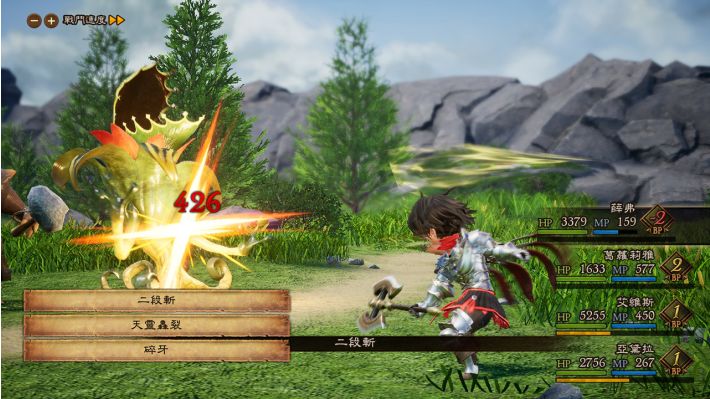 本作采用回合制的指令战斗 ,并配合职业和能力组合 ,除了经典的战斗系统,还能享受由奋勇(预借回合)与坚守(累积回合)来控制战斗回合 ,是本系列独有的崭新又充满战略性的战斗。