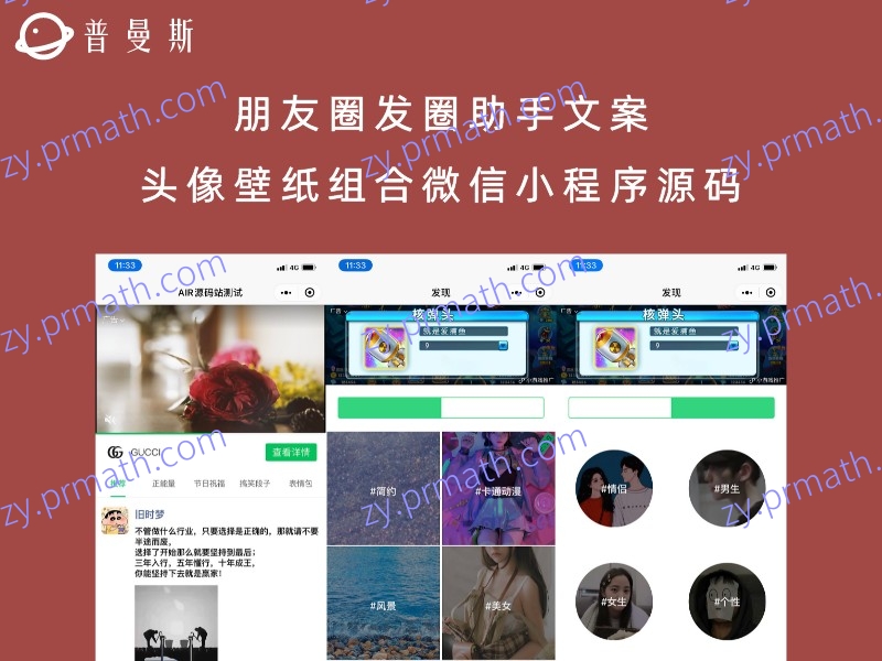 一款微信朋友圈助手的一款小程序源码,内包含了朋友圈文案、壁纸、头像等等。