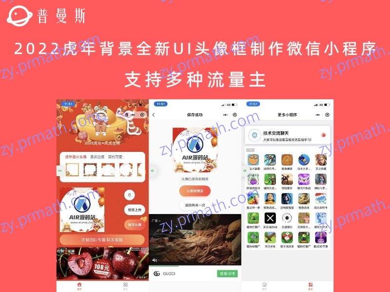 文章标题:2022虎年背景全新UI头像框制作微信小程序 支持多种流量主