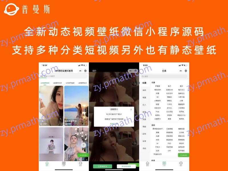 文章标题:全新动态视频壁纸微信小程序源码 支持多种分类短视频另外也有静态壁纸