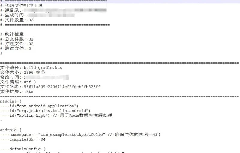 将整个项目目录的代码文件打包到单个txt文件中,自动记录文件编码、大小、修改时间等元数据。