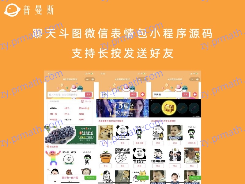 这是一款微信表情包小程序,支持自定义搜索,另外支持长按发送给好友,当然也支持长按保存表情包。