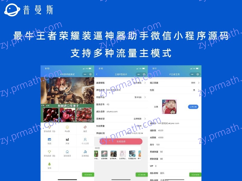 文章标题:最牛王者荣耀装逼神器助手微信小程序源码 支持多种流量主模式