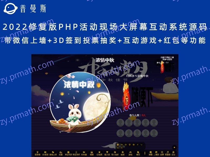 2022修复版PHP活动现场大屏幕互动系统源码,带微信上墙+3D签到投票抽奖+互动游戏+红包等功能。