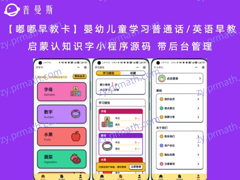 文章标题:【嘟嘟早教卡】 婴幼儿童学习普通话/英语早教启蒙认知识字小程序源码 带后台管理