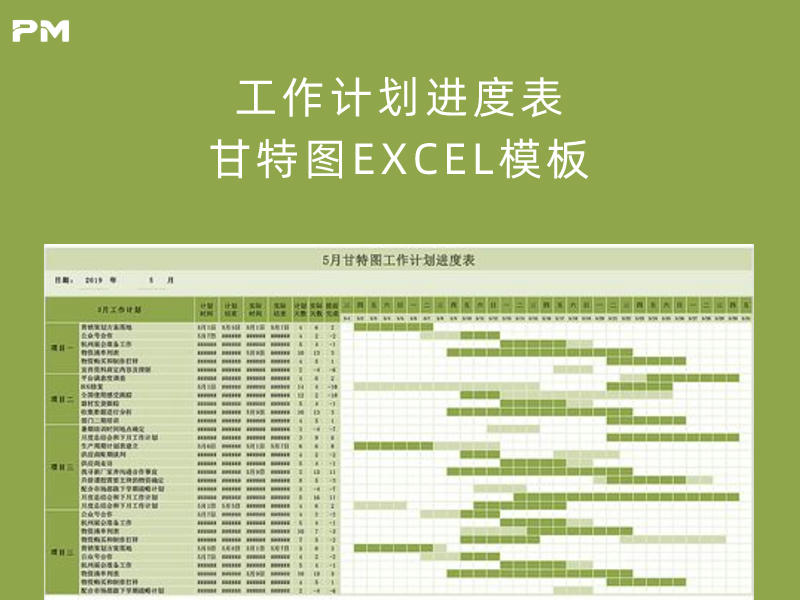 文章标题:工作计划进度表甘特图 EXCEL 模板(A4打印/自动公式/内容可修改)