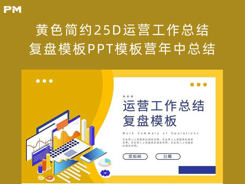文章标题:黄色简约25D运营工作总结复盘模板PPT模板营年中总结