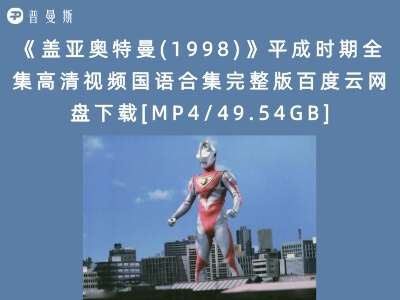 文章标题:《盖亚奥特曼(1998)》平成时期全集高清视频国语合集完整版百度云网盘下载[MP4/49.54GB]