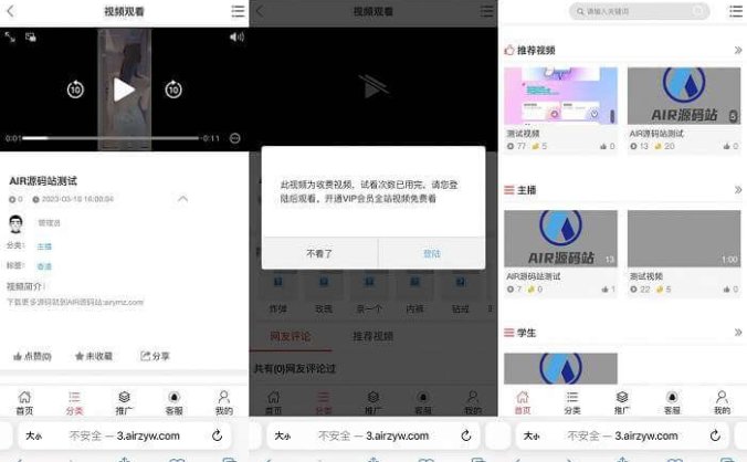 源码介绍: 前后端分离设计,支持游客登陆、VIP会员、代理推广系统、免费观看、单独设置付费点播。 前端自动检测,web环境下打开自动弹出屏蔽页面。后端后台设置非常全面,无需翻改代码,支持本地上传和云存储OSS,且包含礼物和打赏系统数据,可直接对接管理站群,对做站群的站长来说管理起来非常省心,方便的不是一点半点。 支持卡密充值也支持在线支付,全开源运营版全站源码完整打包,功能就不一一介绍了,安装教程…- 5.9k